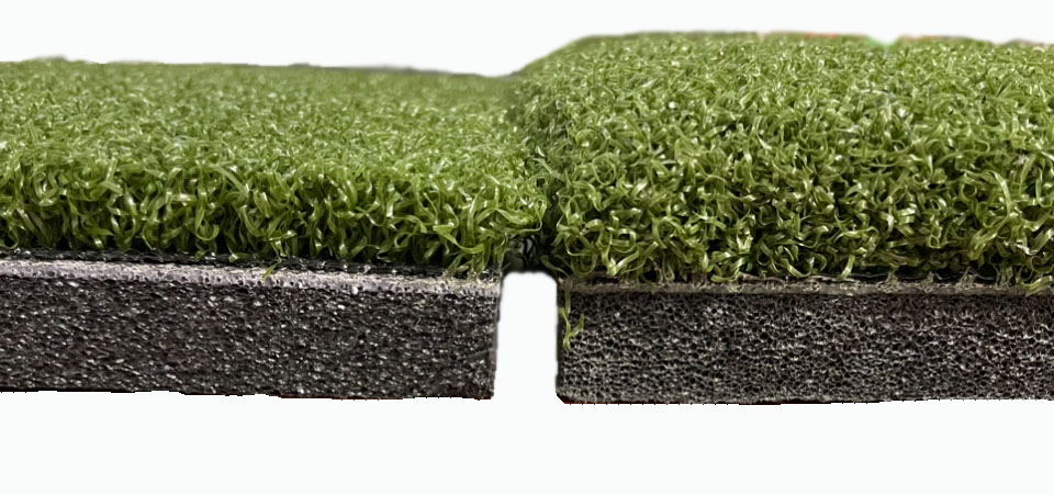 Big Moss' High Impact Hitting mats are great for golf simulator full swing use. We found that these mats have the most durable & versatile performance for hitting, pitching & chipping. They are made with a high impact 5/8 inch foam base that is very shock absorbent allowing for a descending blow. As a result, you obtain the most realistic feedback from your full swings, chips, and pitches with less impact to your joints. This mat can be rotated in all directions and still perform identically when and if you manage to wear out a side. We have found the ground stability for full swings to be unmatched when compared to this mat. Your feet will stay grounded during full swings without the feeling of slipping or floating. However, you may need to secure it with double faced tape to get full effect. Most of all, these mats will perform great with your launch monitor offering up good launch numbers and spin rates compared to other higher pile mats.