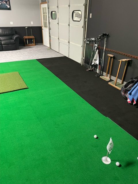 Order the Midnight Shadow black surface filler in bulk or strips to use for darkening and filling out your SIM Bay Install. This is surface is the similar to the surface used on all V2 putting greens but without the foam backing. It offers a great combination of softness, grass height, and darkening capability to balance out any unfilled space within your bay. When used with the V2 surface the height is nearly the same and it is roughly 1/4 inch lower than the commander surface. The Midnight Shadow adds a nice darkening contrast to any bay. It can be used as an entire SIM build out or filling in missing space to add contrast and fill.