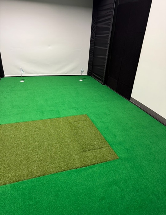 Complete Carl's Place DIY Simulator bays constructed with a 1 level V2 putting surface. This product is built in house with 3/4 inch EVA Foam tiles. The Height of the EVA & V2 surface set perfectly level with our True launch hitting mats. We will pre cut these to be built in and they arrive to you ready to go. Please do not order a mat that is too large to be cut into your green. If we notice this, we will assume you intend to set the mat at the edge of the putting surface without it being cut in. V2 putting surface is custom made to our specs offering the truest putting roll on the market. Its perfect for players that put a premium on quality indoor putting practice. V2 rolls incredible pure at 12.5 on a stimpmeter.